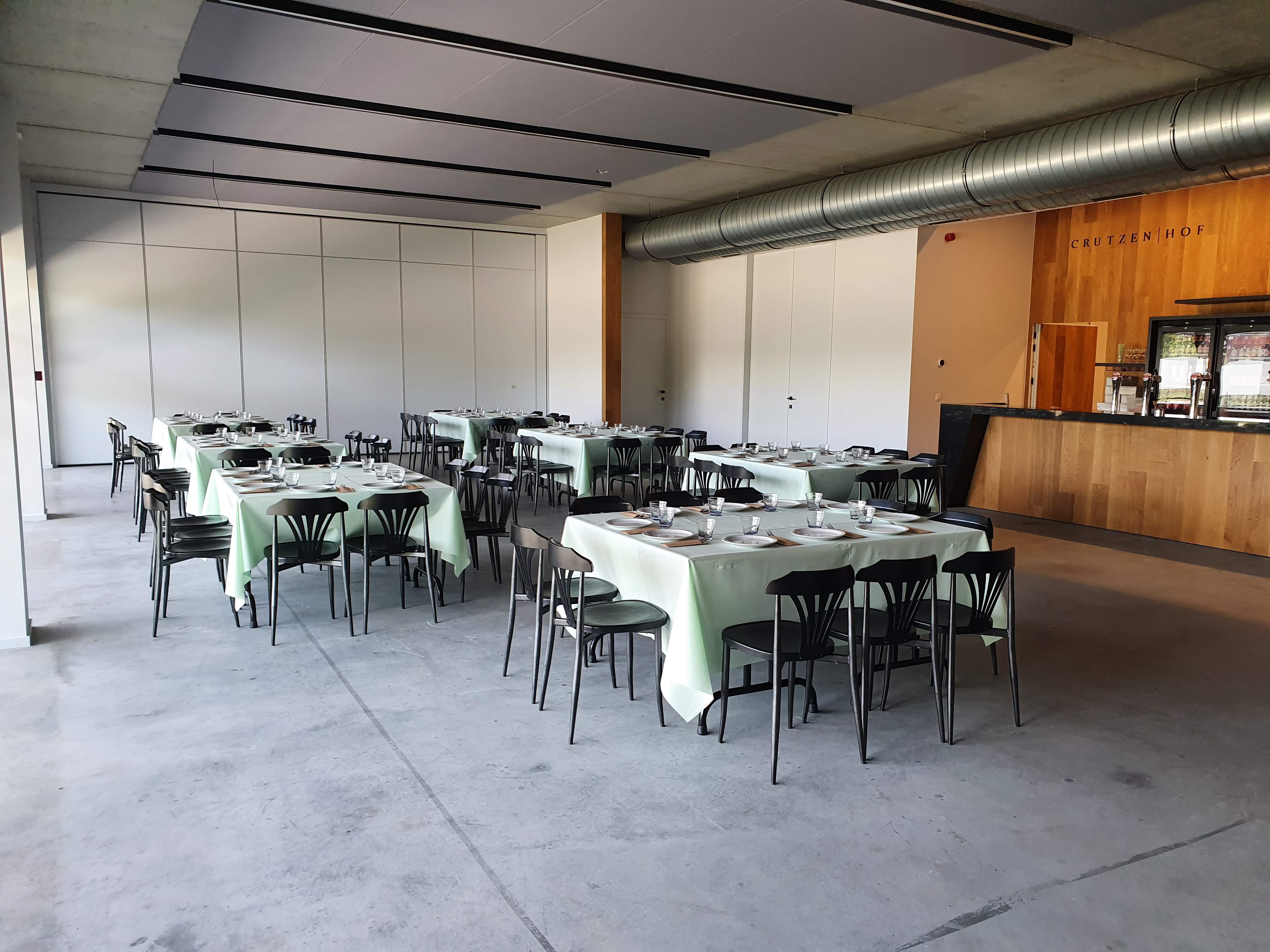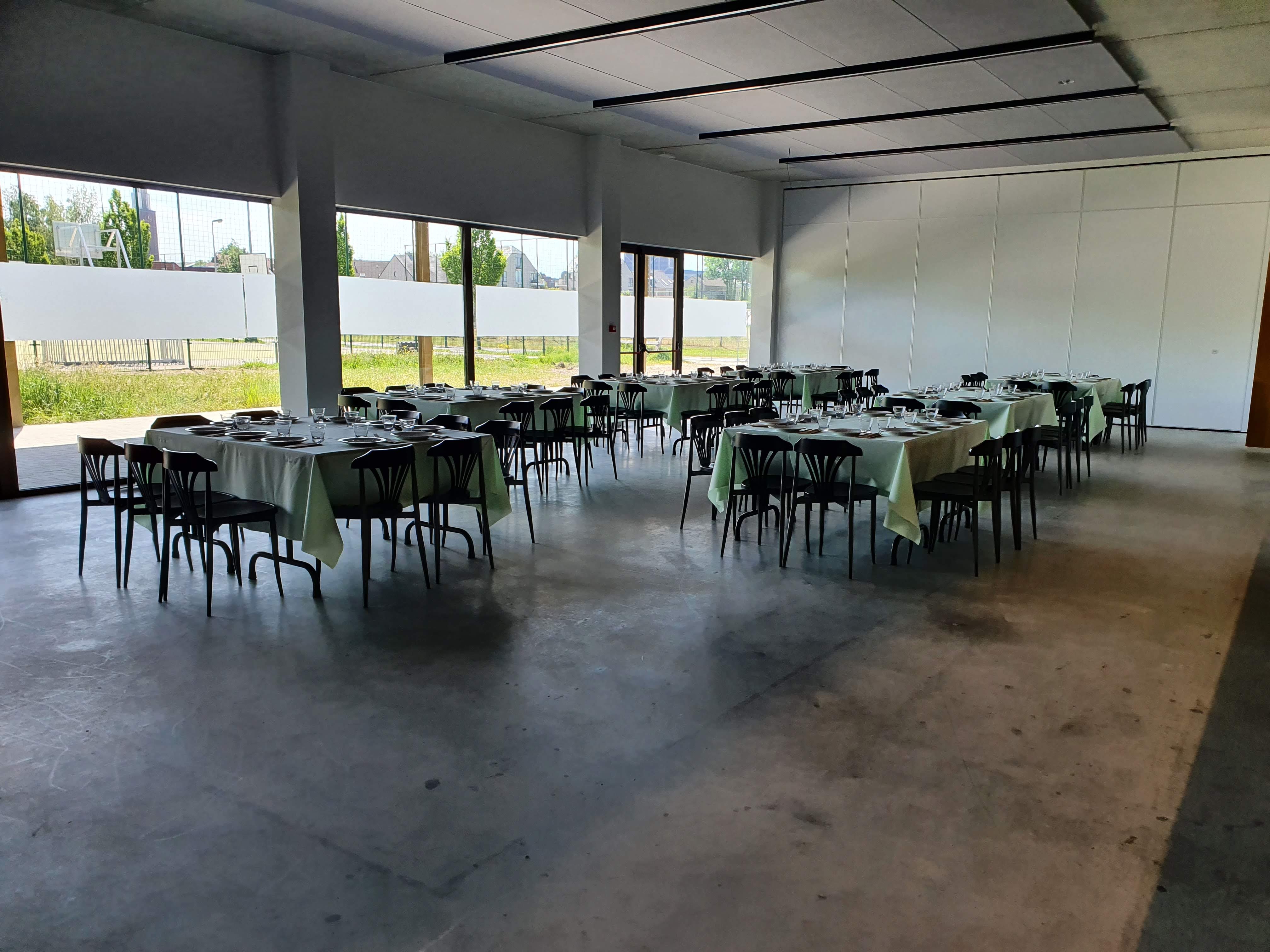 Verhuur van de nieuwe zalen met nieuwe prijzen, per dag van 12u ’s morgens tot 6u ’s morgens de volgende dag: voor de kleine zaal 330 euro plus 200 euro borg = 530 euro, voor de grote zaal 420 euro plus 300 euro borg = 720 euro en voor beide zalen samen 700 euro plus 500 euro borg = 1200 euro, ook vergaderzaal ter beschikking aan 25 euro/aangebroken uur met een minimum van 4u, énkel voor vergaderingen.